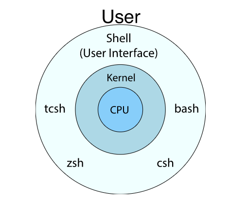 CPU와 같은 Hardware를 Kernel이 감싸고있고, 이 Kernel을 Shell이라는 우리가 사용하는 Interface가 감싸고 있다.
